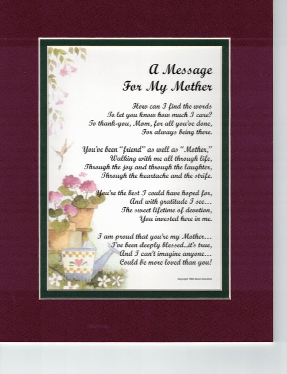 Buy Mother Poem, Mom Verse Saying Print Gift Present, Mother’s Day